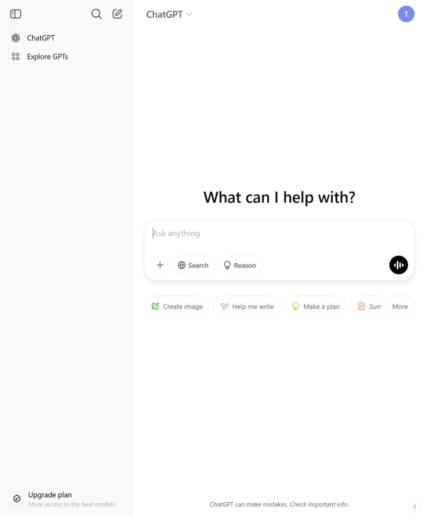 - ขวามือ What can I help with? คือ กล่องแชทที่เพื่อนๆสามารถพิมพ์คำถามและรับคำตอบจาก AI และเราสามารถอัพโหลดไฟล์ให้ AI ได้จากตรงนี้