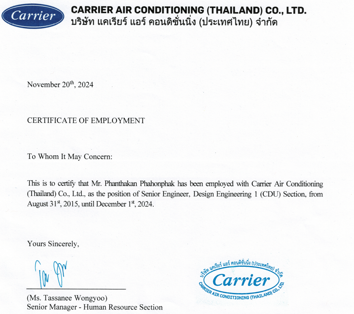 - Carrier Air Conditioning (Thailand) (Aug 2015 – Nov 2024)